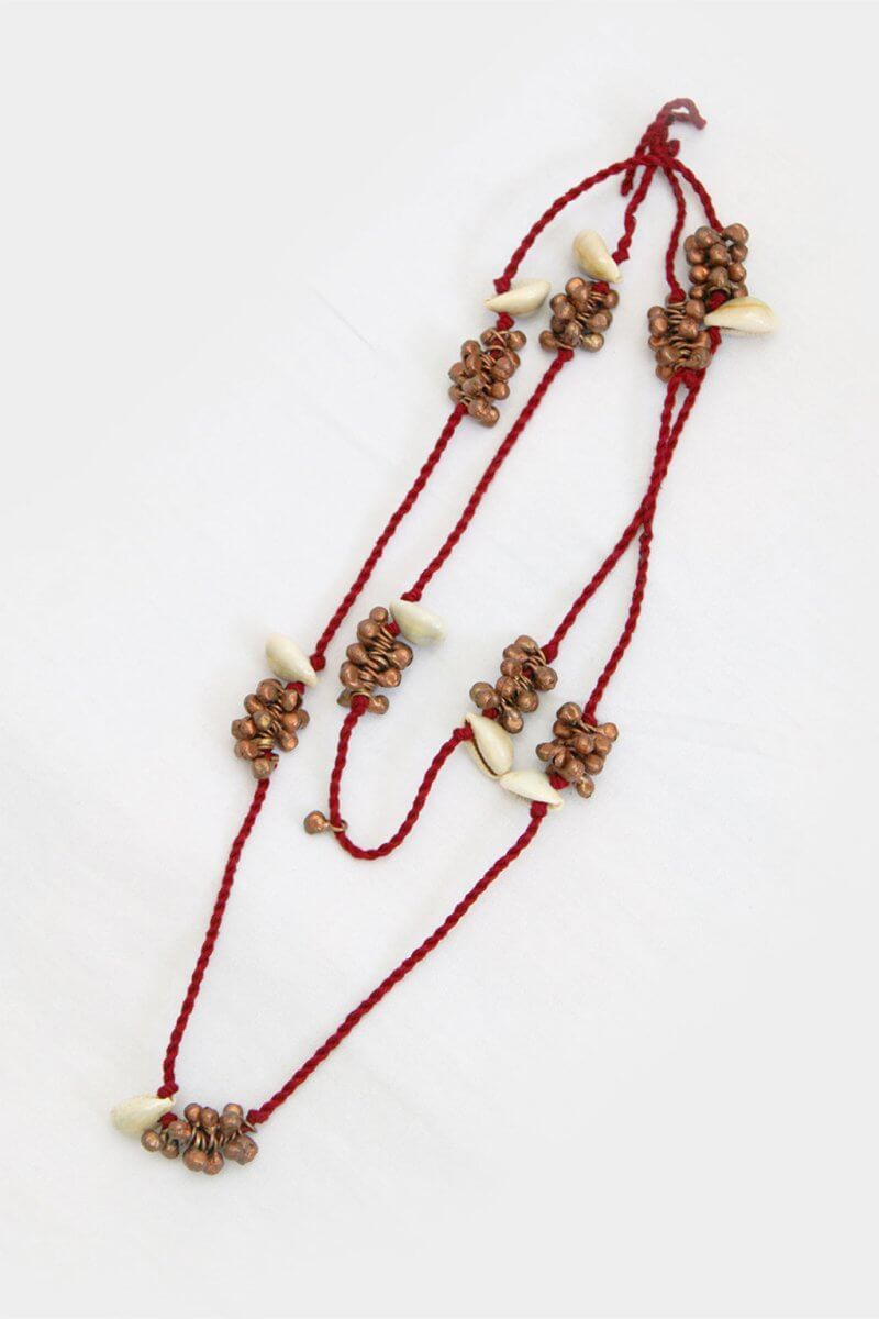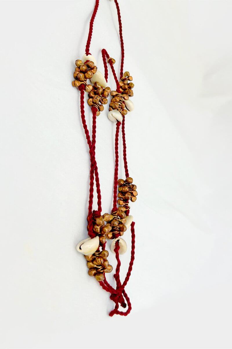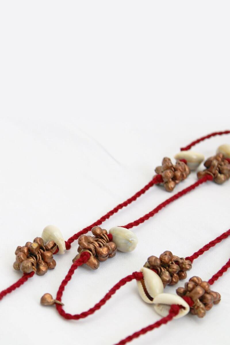 A Multi-colored and multi-layered neck-piece is 100% hand made and it's made up of the left-over fabrics, materials and threads used while making our collections.