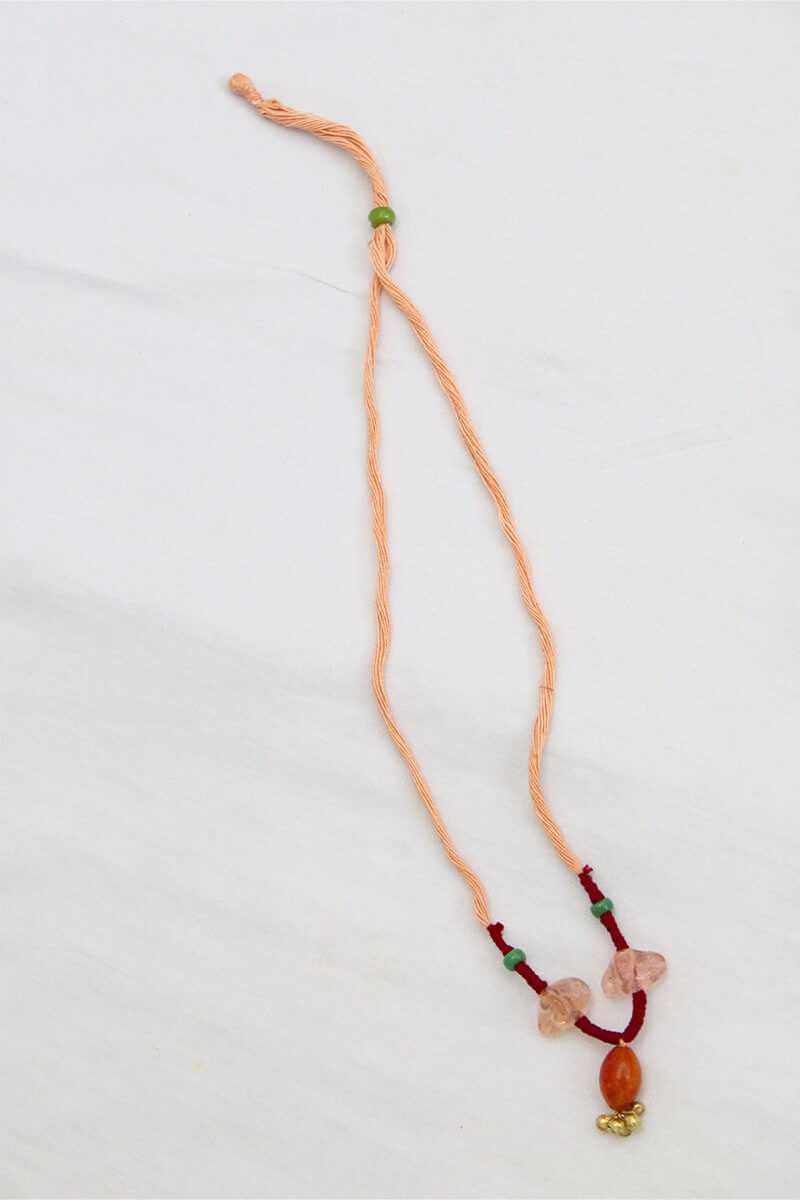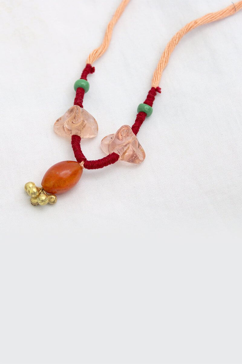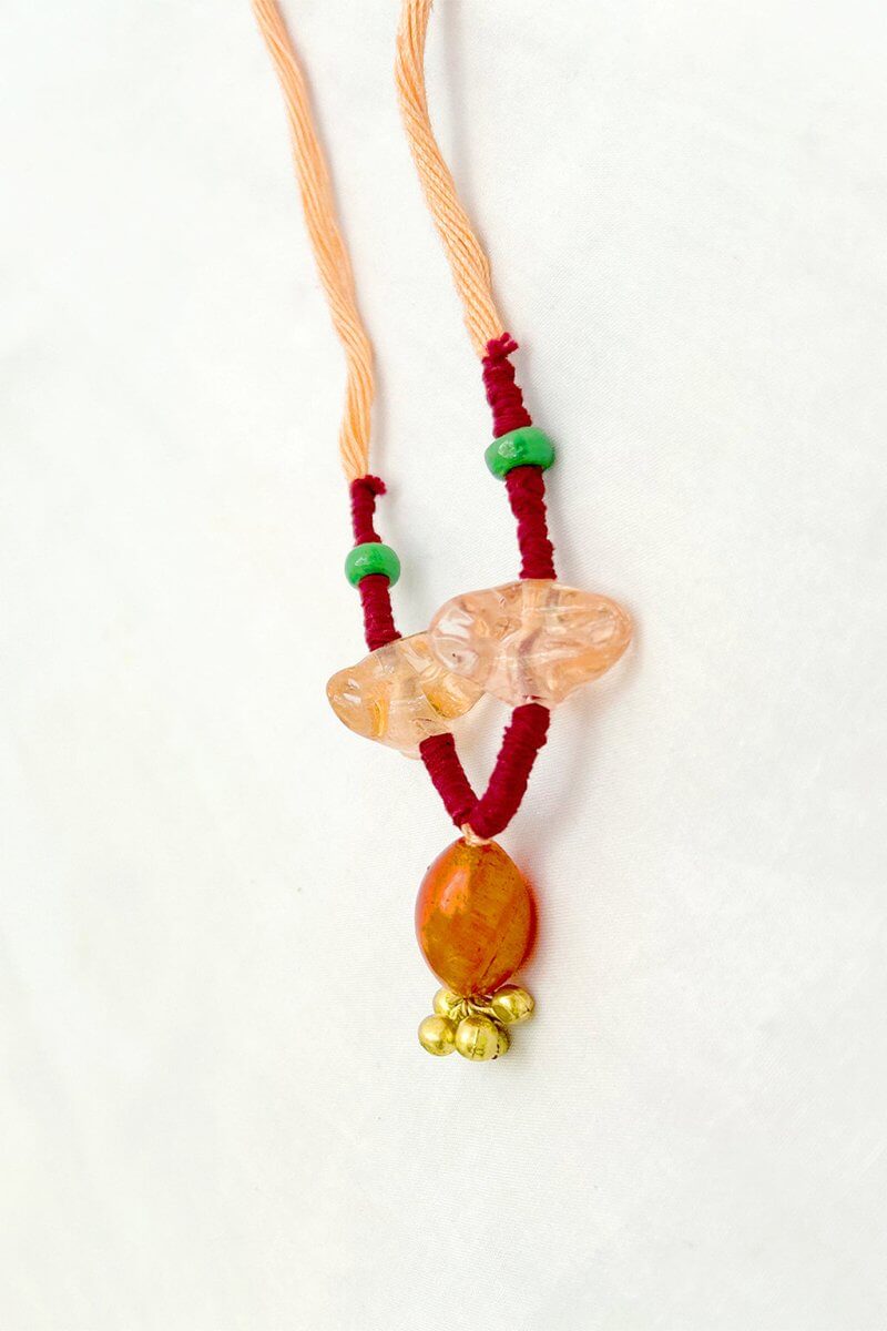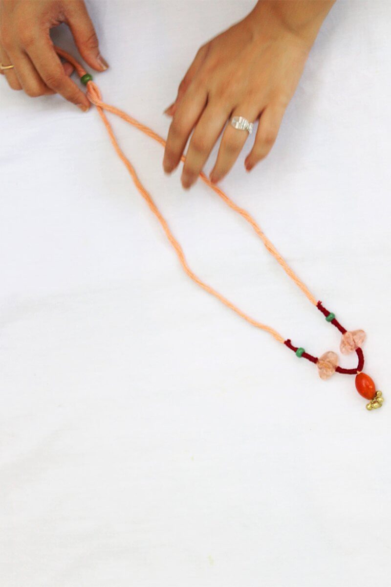 A Multi-coloured neck-piece is 100% hand made and it's made up of the left-over fabrics, materials and threads used while making our collections.