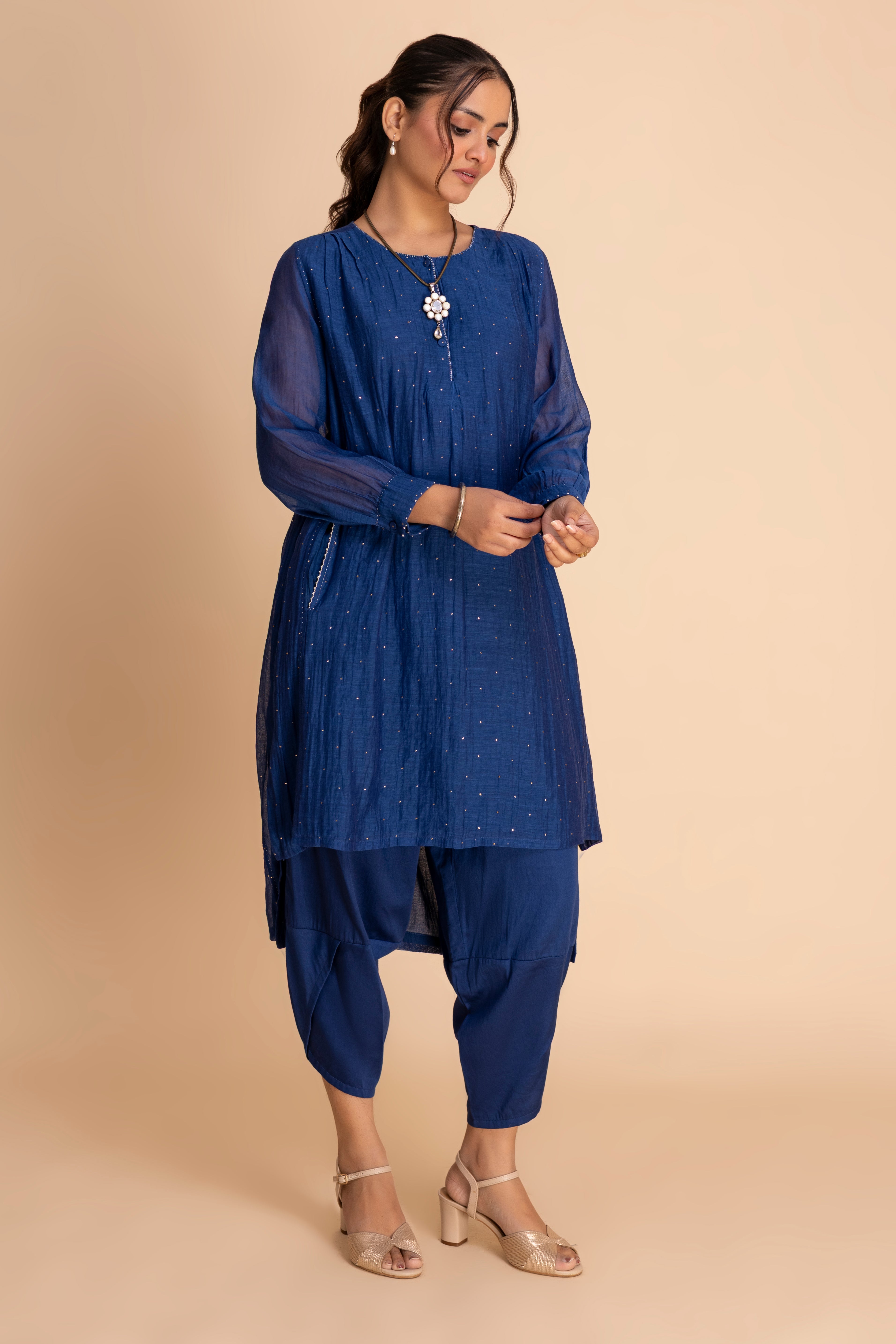 - Fabric: Mukaish Chanderi, Cotton Satin Pants